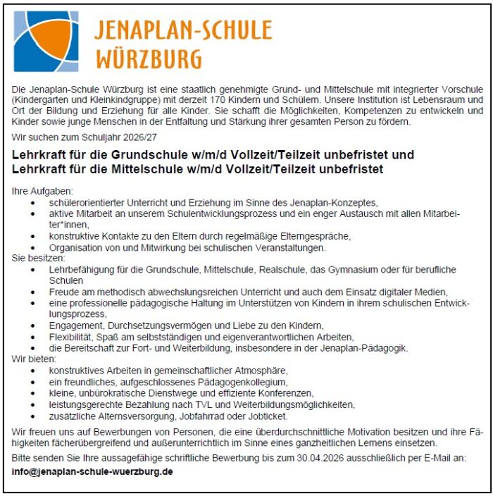 27. April 2026 | Infoabend Schule | Wallgasse 10, 97070 Würzburg | Mehr Informationen |