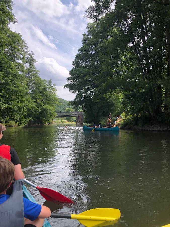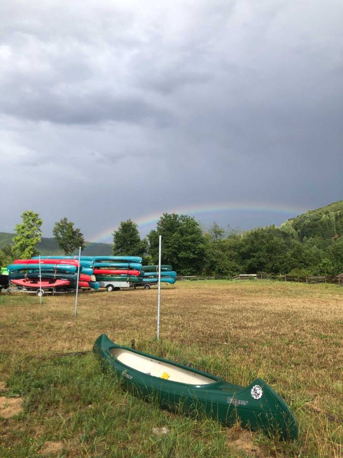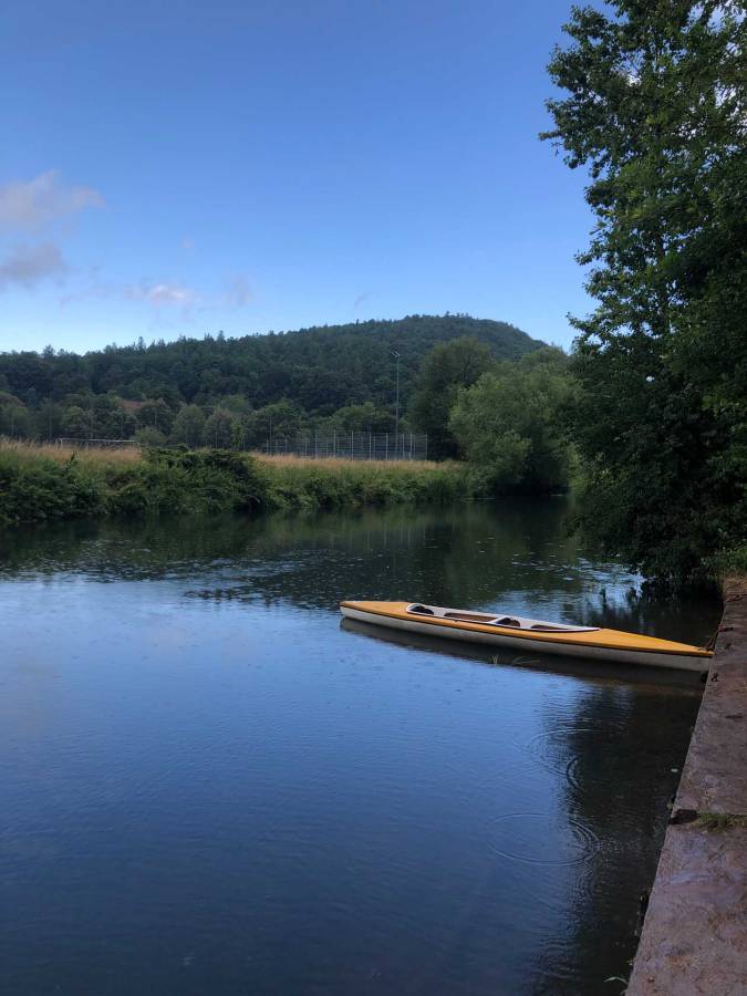 Später wurde es wieder sonnig und wir sind zur Saale gelaufen um Kanu zu fahren. Dann haben wir uns in Gruppen aufgeteilt und sind bis Wolfsmünster gefahren. Wir haben einen Greifvogel und einen Biber gesehen. Als wir angekommen sind, haben wir die Kanus dort am Sportplatz liegen gelassen und sind wieder zurück zum McKamp laufen. Dort haben ein Paar das Abendessen gemacht und der Rest ist in der Saale schwimmen gegangen. Zum Abendessen gab es Falafel, Ragout und Kartoffeln gegessen. Anschließend durften wir noch ein bisschen spielen und sind dann schnell ins Bett gegangen.