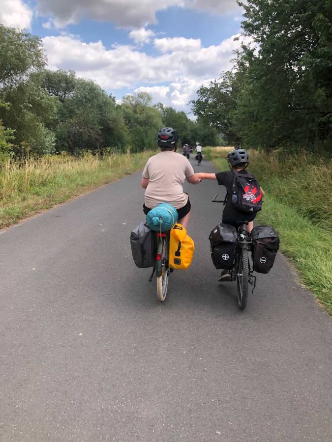 Am Montag, dem 14.7, sind die Mittelgruppen Berge und Himmel aus der Jenaplan-Schule Würzburg, mit unseren Fahrrädern nach Gräfendorf gefahren. In Zell haben wir eine Pause gemacht, won wir drei Schüler kurz aus den Augen verloren haben, weil sie weitergefahren sind und die Ausfahrt verpasst haben. Zum Glück konnte Frau Burkard sie wiederfinden. Wir haben dann noch in Zellingen, Karlstadt und Gemünden eine Pause gemacht und dann sind wir endlich um 15 15 Uhr im McKamp angekommen. Alle waren nach 55km erleichtert. Wir haben uns das Gelände angeguckt und die Zimmeraufteilung gemacht. Zum Abendessen gab es Pizza. Um 21 Uhr gingen wir ins Bett.