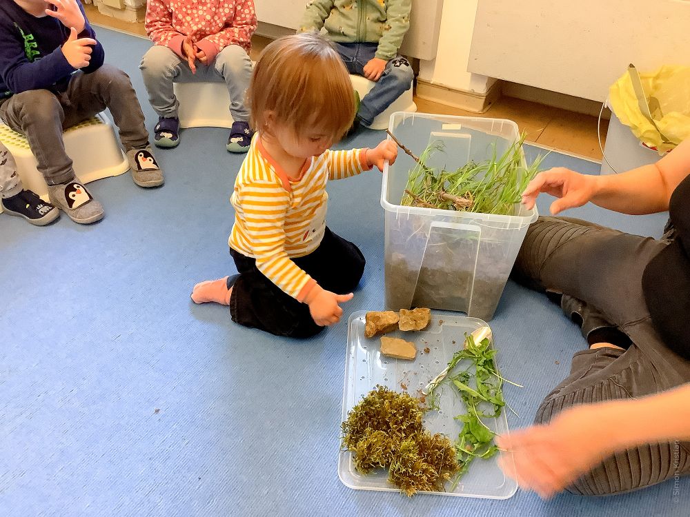 - Bilderbuchbetrachtungen werden vorgestellt oder ein neues Lied/Fingerspiel wird gesungen und gespielt.