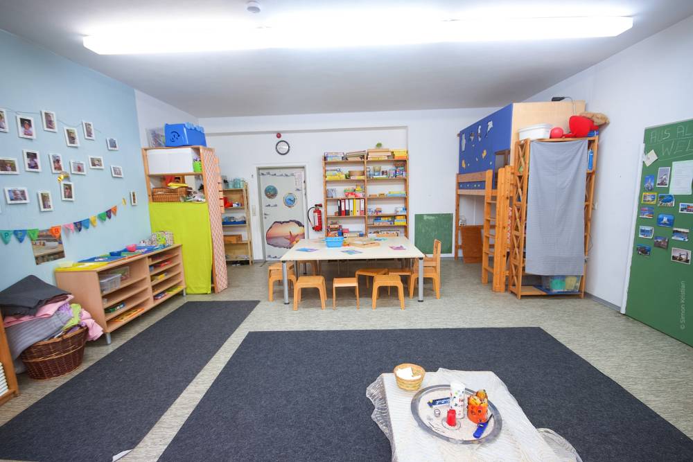 Unsere Gruppenräume sind für Kinder anregend gestaltet. Neben dem feststehenden Kreis, der die Möglichkeit schafft, als Gemeinschaft zusammen zu kommen, sind die Gruppenräume in einzelne Bereiche bzw. Ecken unterteilt. Die Kinder können selbst entscheiden, womit sie sich beschäftigen möchten. Es gibt Platz für ruhige Spiele, zum Malen und Basteln, eine Ecke zum Bauen sowie einen Bereich zum Ausruhen, Kuscheln und zum Bücheranschauen.