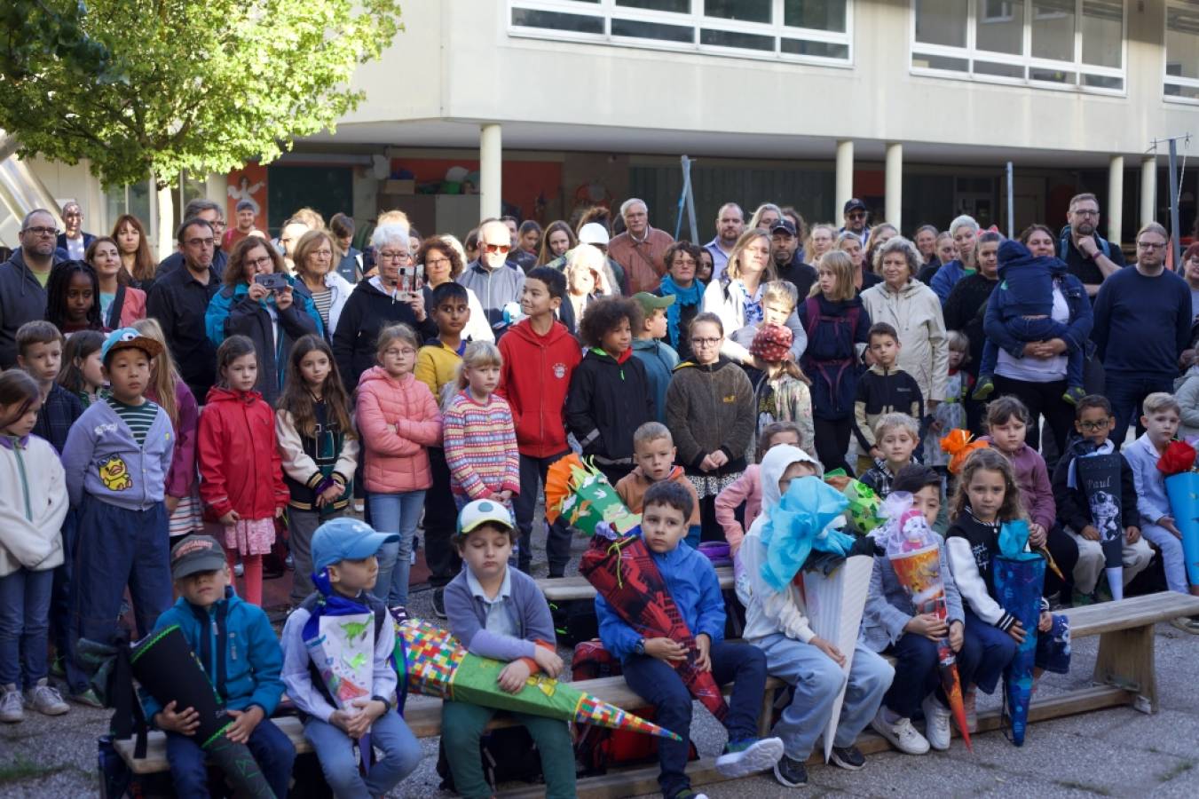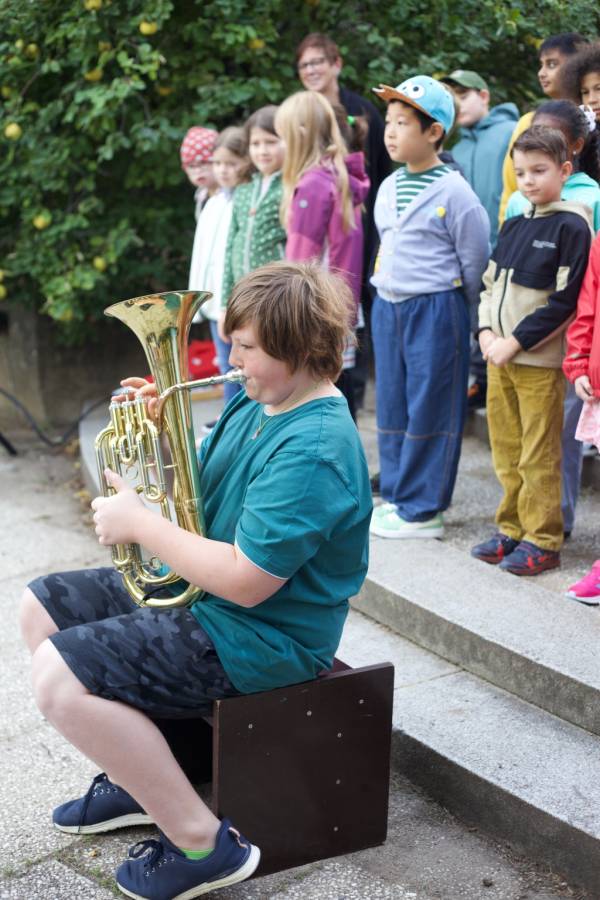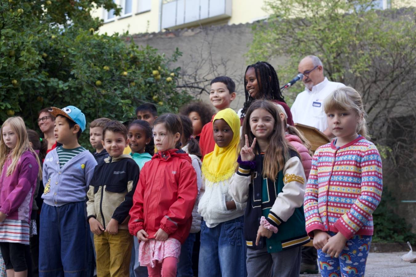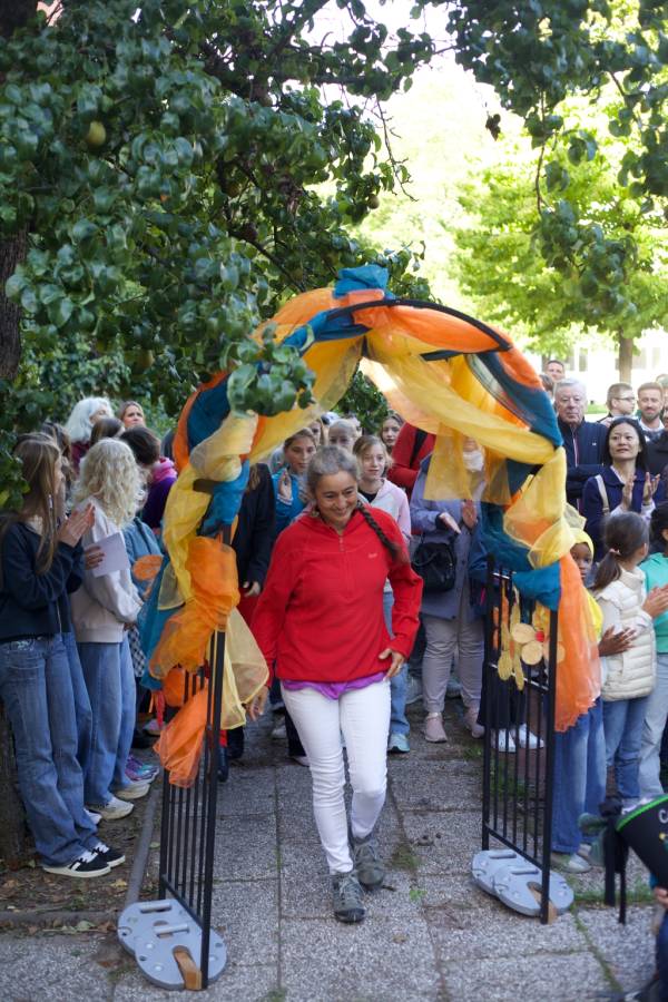 Die Schule hat begonnen - wir haben es alle schon mitbekommen. Nun haben wir es geschafft, einige Eindrücke des ersten Schultags an unserer Schuljahresbeginnfeier zu zeigen. Der Tag war uns vom Wetter gerade noch so hold und wir konnten draußen die Feier abhalten. Wenn auch zwischenzeitlich ein eisiger Wind die Köpfe umpfiff, so konnten doch alle die kurzweilige Feier genießen. Warme Worte der Schulleitung führten durch das bunte Programm, das in diesem Jahr eine Neuerung bereithielt. Es durften nicht nur die Schüler:innen aus der Untergruppe das Programm gestalten, sondern auch Schüler:innen aus der MG und OG präsentierten, moderierten, spielten Lieder oder sangen kräftig den Jenaplan-Song mit. Vielen Dank an Marlene und Lucas für den musikalischen Beitrag aus den Mittelgruppen. Ein Dank gilt auch Amelia, Kim, Chiara und Ben aus den Obergruppen für den Sketch, der die Zuschauer schmunzeln ließ. Nach drei Wochen Schule haben wir alle sicherlich schon den Ernst des Lebens kennengelernt. Wir freuen uns auf weitere tolle Erlebnisse mit den neuen und alten Schüler:innen und Kolleg:innen, die in diesem Schuljahr das Haus der Jenaplan-Schule mit Leben füllen werden.