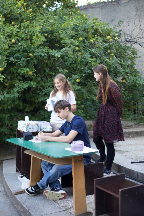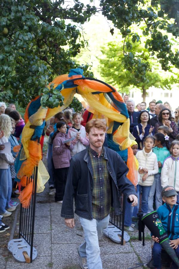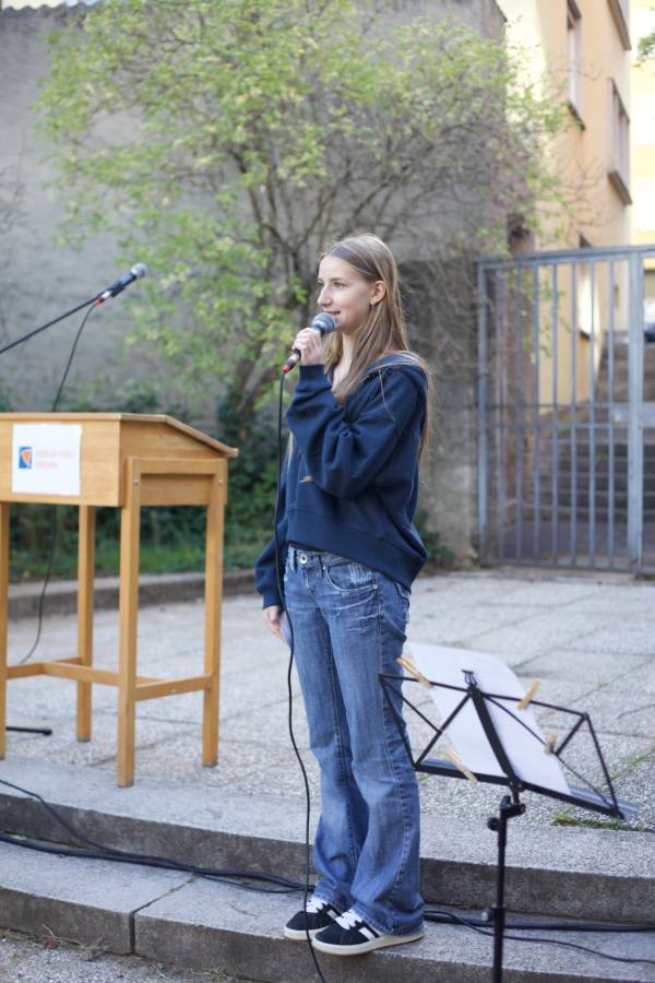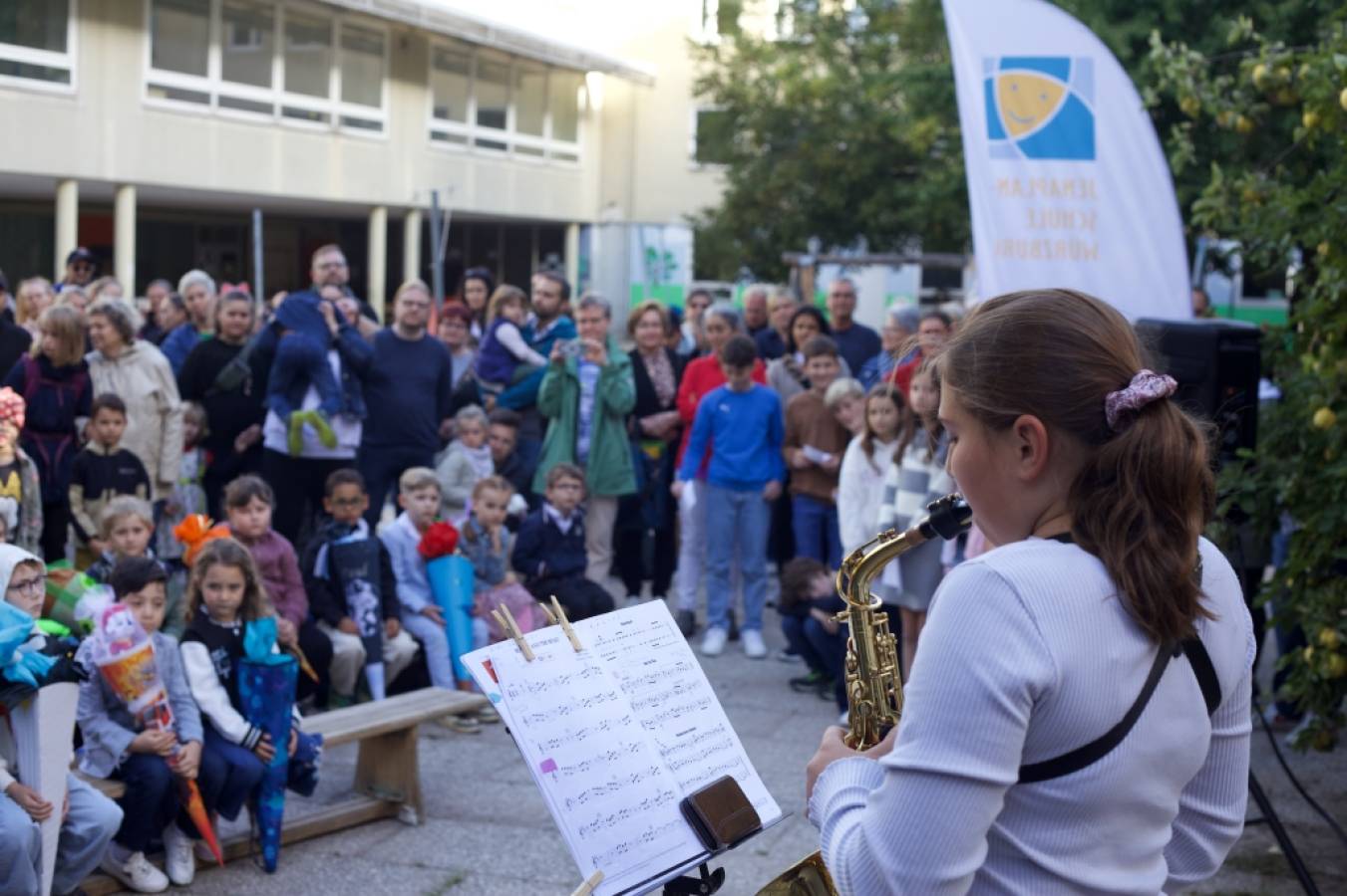 Die Schule hat begonnen - wir haben es alle schon mitbekommen. Nun haben wir es geschafft, einige Eindrücke des ersten Schultags an unserer Schuljahresbeginnfeier zu zeigen. Der Tag war uns vom Wetter gerade noch so hold und wir konnten draußen die Feier abhalten. Wenn auch zwischenzeitlich ein eisiger Wind die Köpfe umpfiff, so konnten doch alle die kurzweilige Feier genießen. Warme Worte der Schulleitung führten durch das bunte Programm, das in diesem Jahr eine Neuerung bereithielt. Es durften nicht nur die Schüler:innen aus der Untergruppe das Programm gestalten, sondern auch Schüler:innen aus der MG und OG präsentierten, moderierten, spielten Lieder oder sangen kräftig den Jenaplan-Song mit. Vielen Dank an Marlene und Lucas für den musikalischen Beitrag aus den Mittelgruppen. Ein Dank gilt auch Amelia, Kim, Chiara und Ben aus den Obergruppen für den Sketch, der die Zuschauer schmunzeln ließ. Nach drei Wochen Schule haben wir alle sicherlich schon den Ernst des Lebens kennengelernt. Wir freuen uns auf weitere tolle Erlebnisse mit den neuen und alten Schüler:innen und Kolleg:innen, die in diesem Schuljahr das Haus der Jenaplan-Schule mit Leben füllen werden.