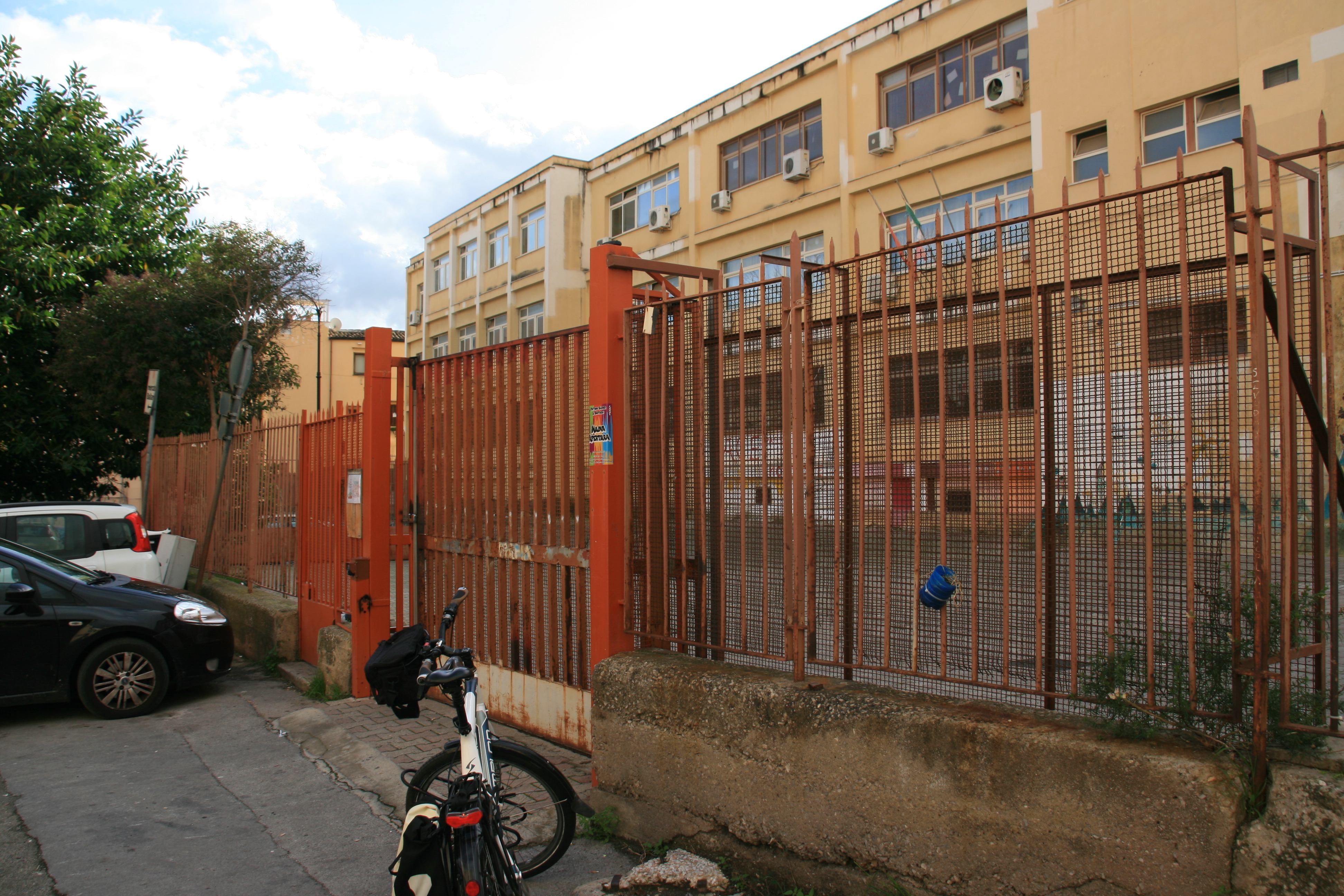 Hier ein Schulgebäude in Palermo. Das sieht von außen wie eine Justizvollzugsanstalt aus. Auch die Optik des Gebäudes ist nicht sehr schön. Dem Schulhof nach zu urteilen, handelt es sich nicht um eine Grundschule, da keine Spielgeräte vorhanden sind.